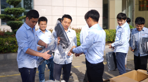除此之外,公司不忘伴隨著與企業一起成長的全體員工,送上公司25周年紀念禮品,在25周年紀念當天,向全體員工及各子公司員工發放了25周年紀念背包及《二十五周年功勛紀念冊》,同時還向各功勛員工發放了紀念形象擺臺。