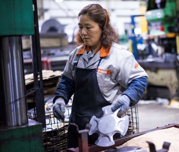 作為企業的一名普通員工,她自覺遵守各項規章制度,從不遲到早退,脫崗串崗,做到上班一分鐘,工作60秒,做到服從領導,聽從指揮,團結工友,任勞任怨,全身心的投入到生產工作中。大家都知道打磨工序比較累也很臟,打磨的粉塵漫天飛,別人都不愿意做,但她在知道生產線上的打磨工有事請假后,都自己主動前往打磨工位進行打磨,以保證生產線正常運轉。她不僅做好自己的本職工作,而且還積極支援別的生產線,努力幫忙完成生產任務。16寸卡萊輻板線生產的輻板比較重,一般女員工都不愿意去做,而她聽到生產來不及,產品急等發貨,需要她前去幫忙生產,她每次都二話不說就前去16寸卡萊輻板線進行工作。
