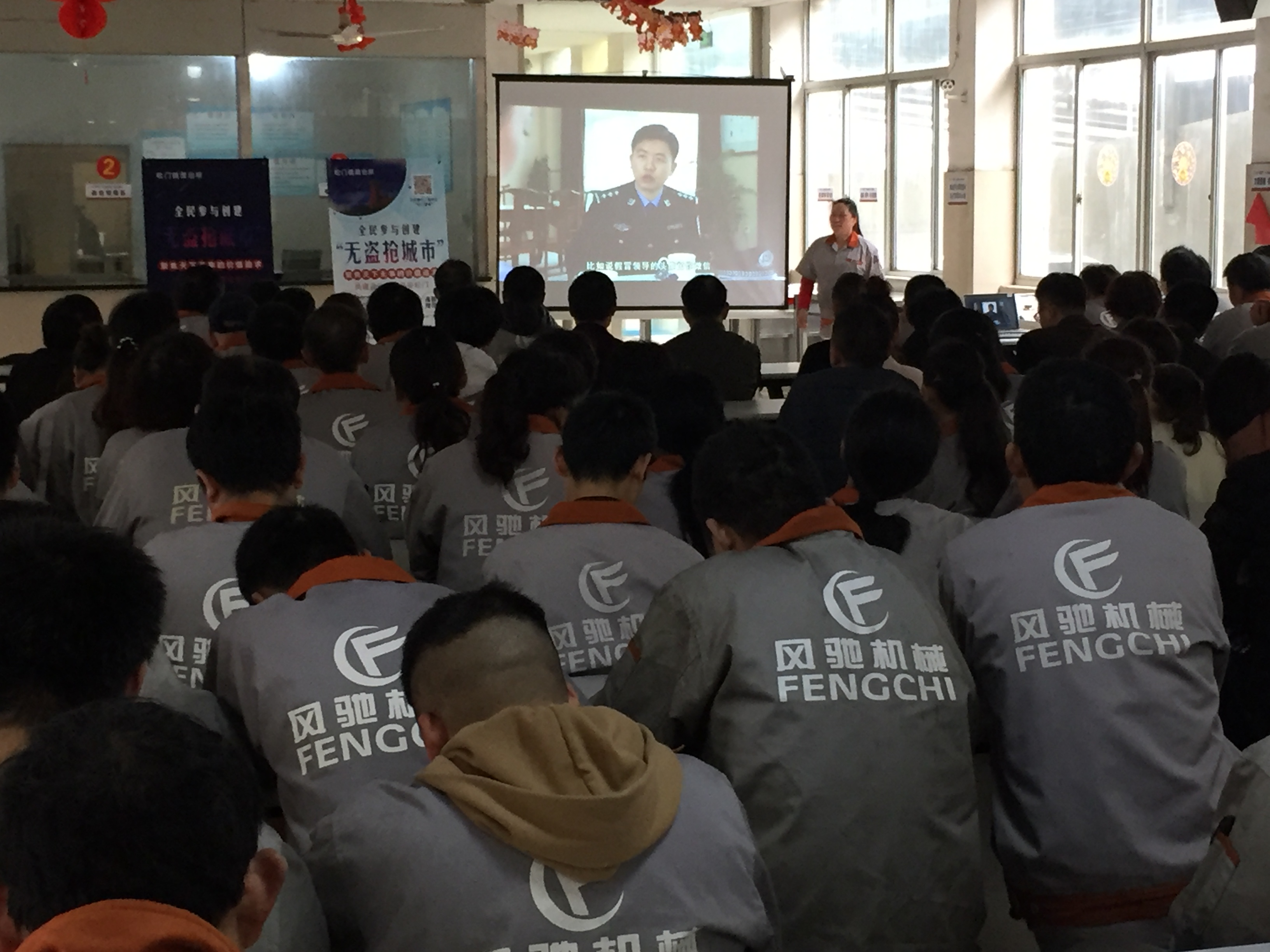 公司為了提高我企業員工的防盜、防強、防騙意識,同時大力支持創建臺州市“無盜搶城市”宣傳活動,在2019年3月20日下午,我司誠邀松門派出所人員前來給員工上了一堂防盜搶安全知識課,同時播放了創建“無盜搶城市”宣傳視頻,員工紛紛踴躍參加,全程全神貫注的認真聽講。